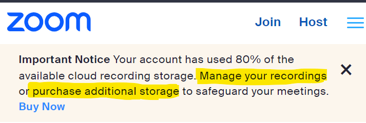 Leaving your recordings on Zoom™ means you will pay extra to store them, every month.